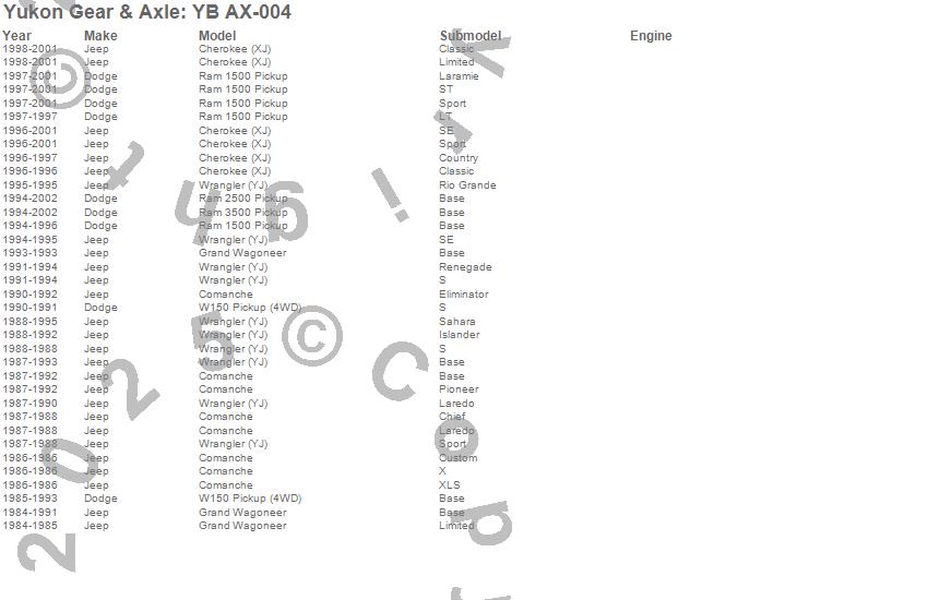 Cherokee (XJ), Comanche, Grand Wagoneer, Ram 1500, Ram 2500, Ram 3500, W150 Pickup, Wrangler (YJ), Dodge, Jeep, 2002, 2001, 2000, 1999, 1998, 1997, 1996, 1995, 1994, 1993 more…