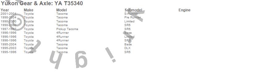 Below is an abreviated list of applications for the Axle Shaft. 4Runner, Tacoma, Toyota, 2004, 2003, 2002, 2001, 2000, 1999, 1998, 1997, 1996, 1995 more...