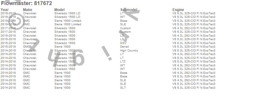 Below is an abreviated list of applications for the Force II Cat Back System.