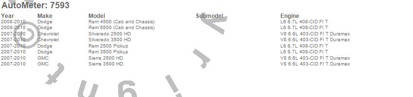 Below is an abreviated list of applications for the Phantom II Fuel Rail Pressure Gauge.