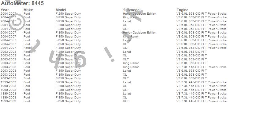 Below is an abreviated list of applications for the Factory Match Pyrometer/EGT Gauge.