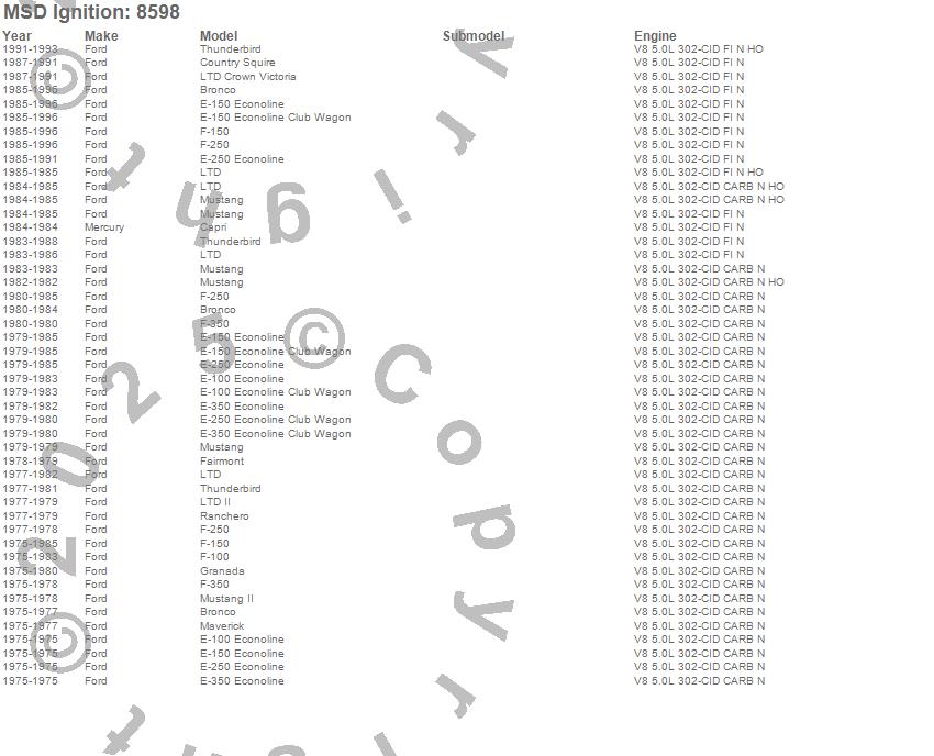 Bronco, Capri, Country Squire, E-100 Econoline, E-150 Econoline, E-150 Econoline Club Wagon, E-250 Econoline, E-350 Econoline, F-100, F-150, F-250, F-350, Fairmont, Granada, LTD, LTD Crown Victoria, LTD II, Maverick, Mustang, Mustang II more…