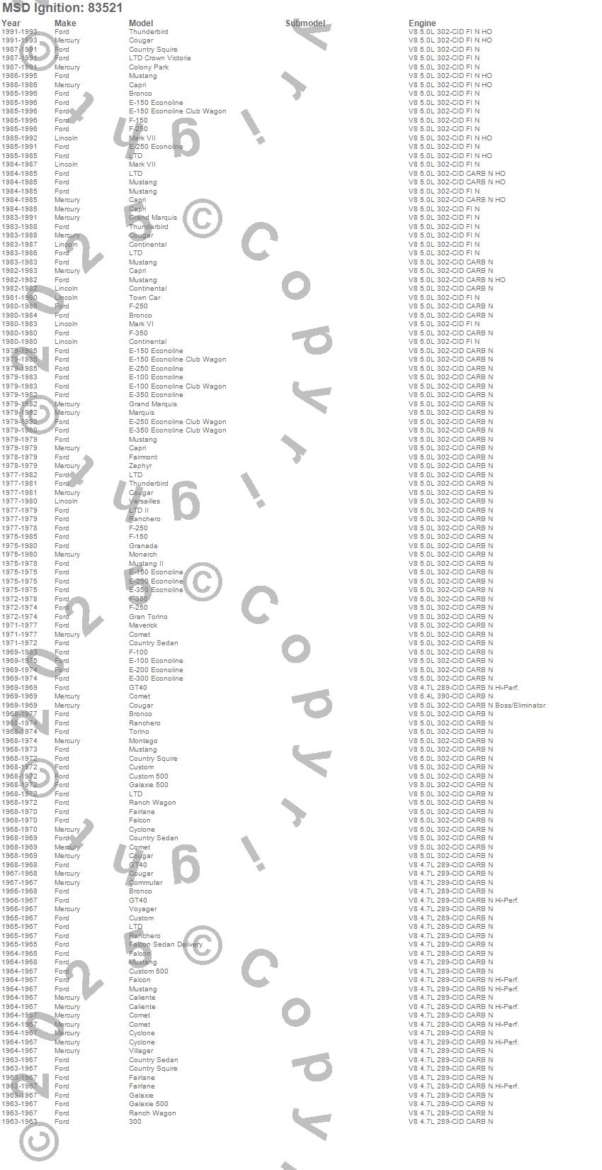 Bronco, Caliente, Capri, Club Cargo, Colony Park, Comet, Commuter, Continental, Cougar, Country Sedan, Country Squire, Custom, Custom 500, Cyclone, E-100 Econoline, E-150 Econoline, E-150 Econoline Club Wagon, E-200 Econoline, E-250 Econoline, E-300 Econoline more…