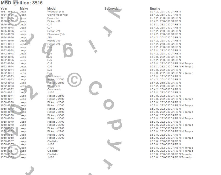 - Use With Jeep I-6 232/258 cu in. Engines