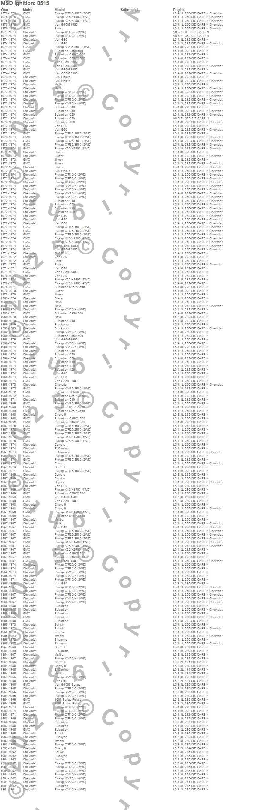 Below is an abreviated list of applications for the Pro-Billet Distributor.