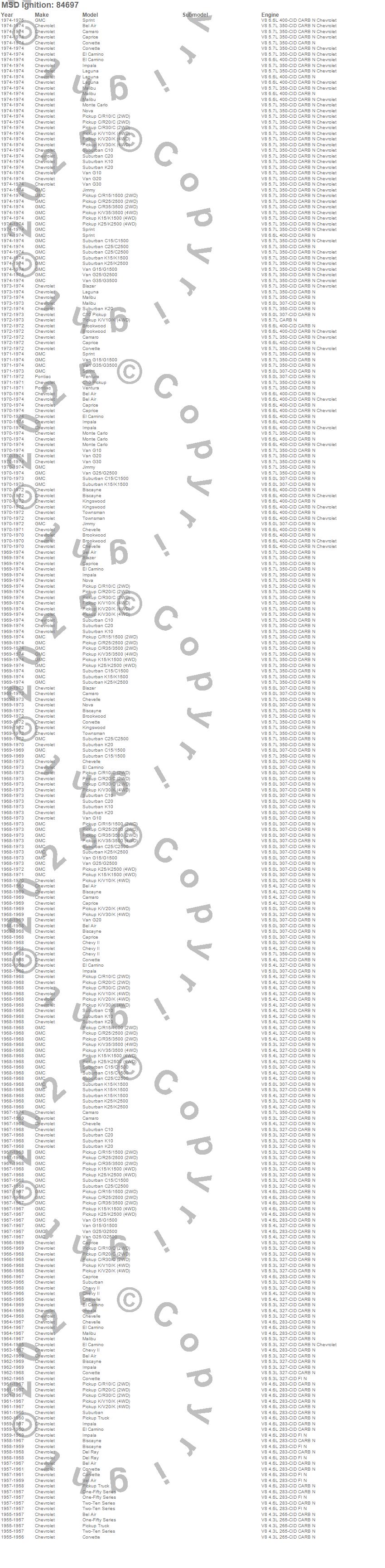 Below is an abreviated list of applications for the Crank Trigger Distributor.