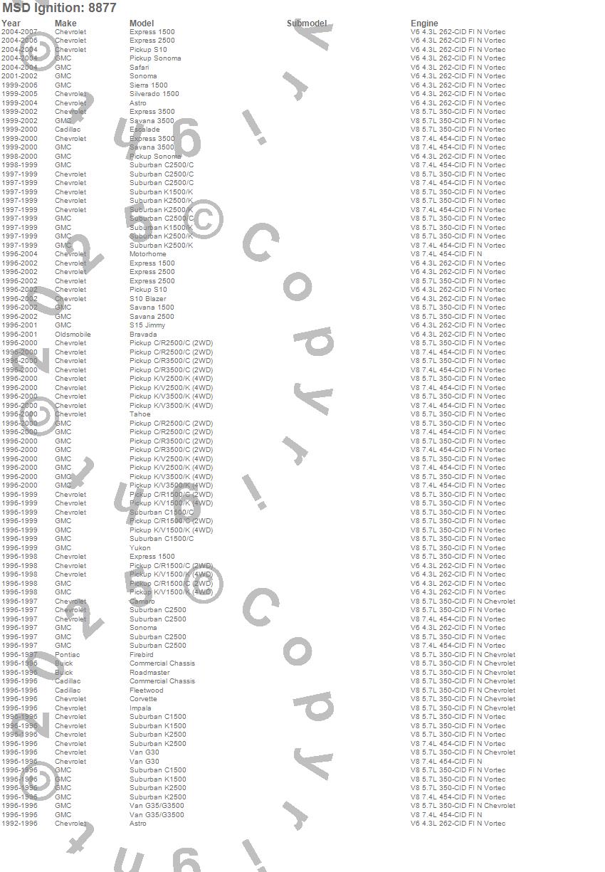 Astro, Bravada, C1500 Pickup, C1500 Suburban, C2500 Pickup, C2500 Suburban, C3500 Pickup, Camaro, Commercial Chassis, Corvette, Escalade, Express 1500, Express 2500, Express 3500, Firebird, Fleetwood, G30 Van, G35/G3500 Van, Impala, K1500 Pickup more…