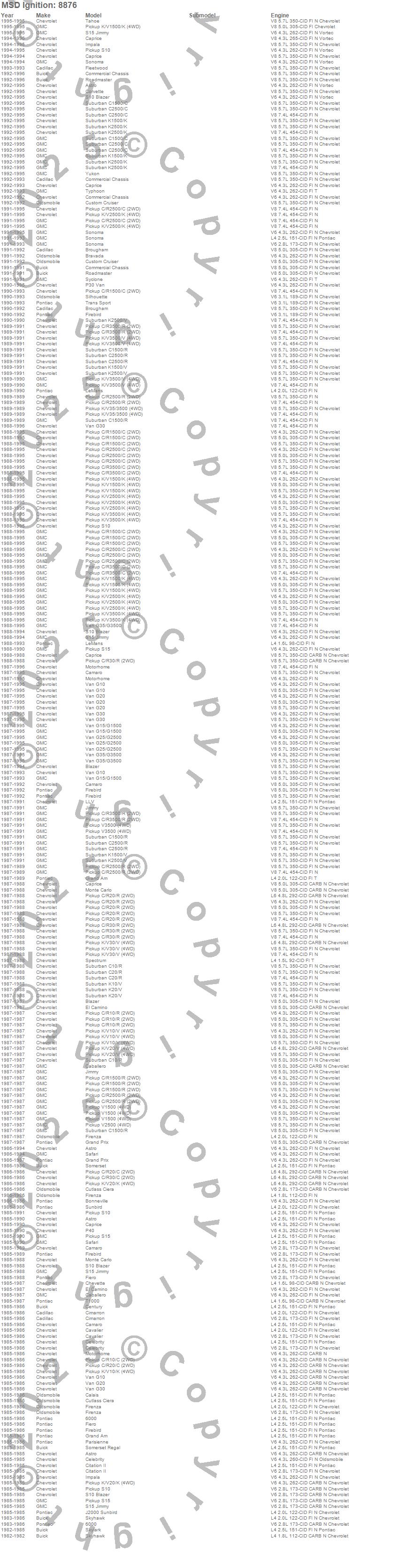 Below is an abreviated list of applications for the Ignition Wiring Harness.