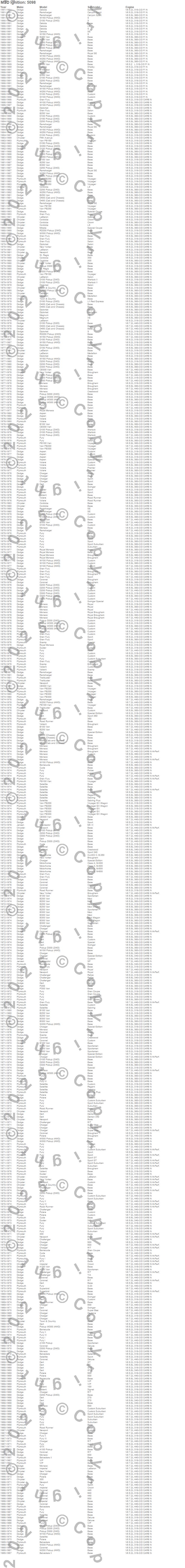 300, A100 Truck, A100 Van, Aspen, B100 Van, B150 Van, B200 Van, B250 Van, B300 Van, B350 Van, Barracuda, Belvedere, Belvedere II, CB300 Van, Challenger, Charger, Cordoba, Coronet, Cuda, Custom more…