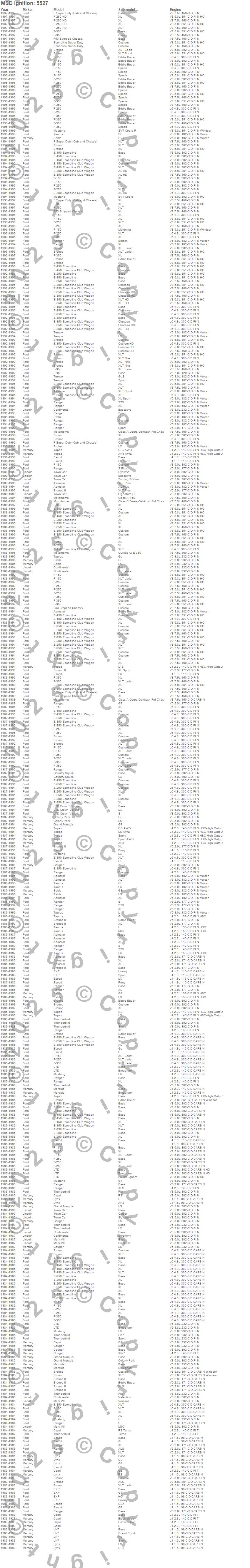 Aerostar, Bronco, Bronco II, Capri, Colony Park, Continental, Cougar, Country Squire, E Super Duty, E-150 Econoline, E-150 Econoline Club Wagon, E-250 Econoline, E-250 Econoline Club Wagon, E-350 Econoline, E-350 Econoline Club Wagon, Escort, EXP, F Super Duty, F-150, F-250 more…