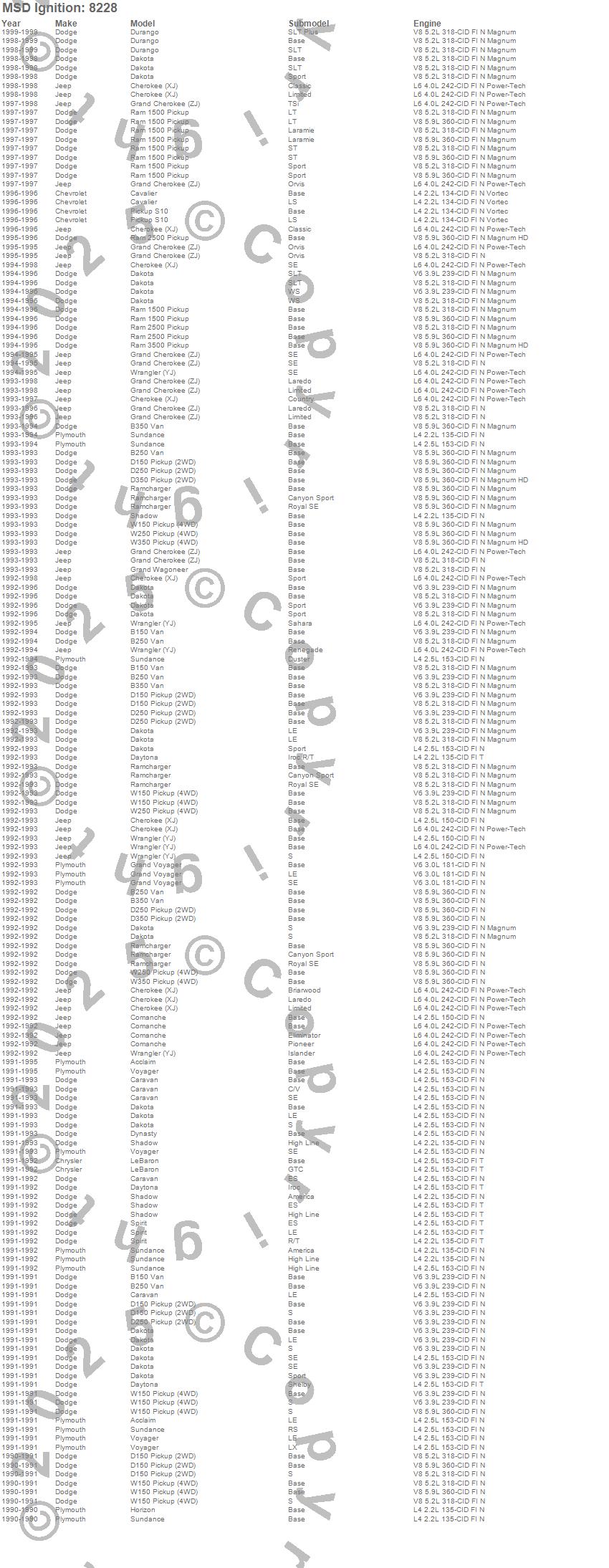 Acclaim, B150 Van, B250 Van, B350 Van, Caravan, Cavalier, Cherokee (XJ), Comanche, D150 Pickup, D250 Pickup, D350 Pickup, Dakota, Daytona, Durango, Dynasty, Grand Cherokee (ZJ), Grand Voyager, Grand Wagoneer, Horizon, LeBaron more…