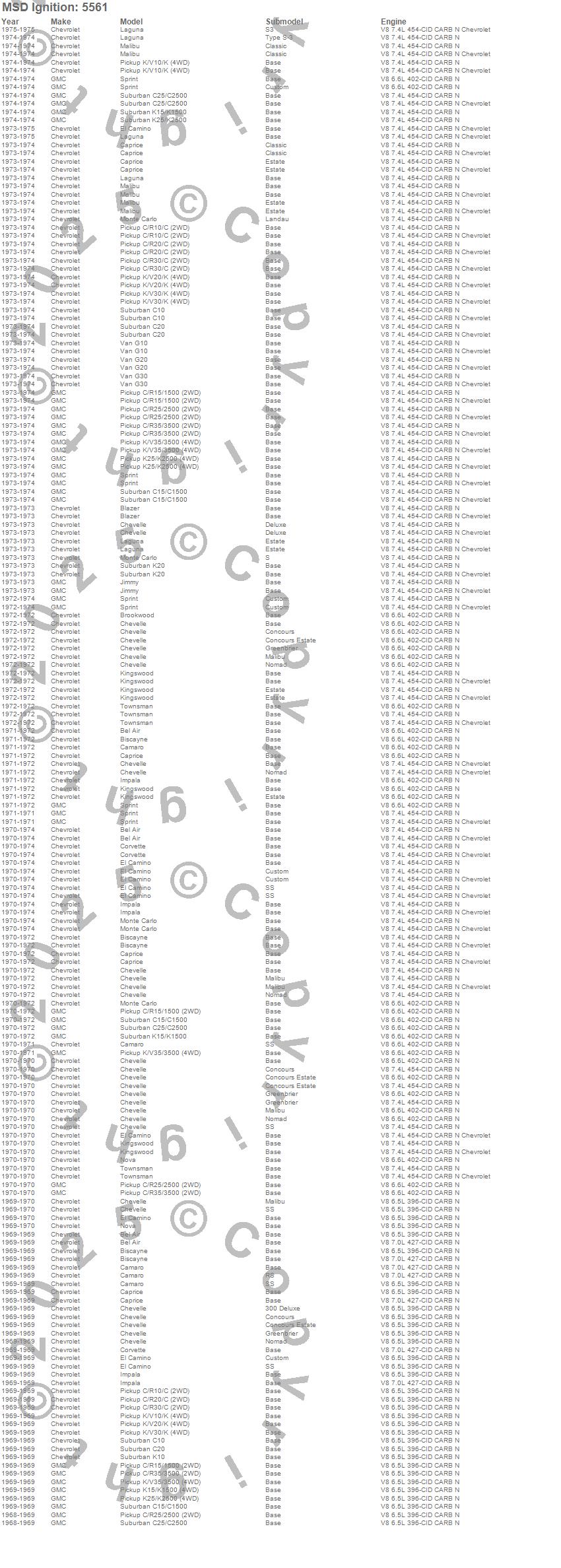 Below is an abreviated list of applications for the Street Fire Spark Plug Wire Set.