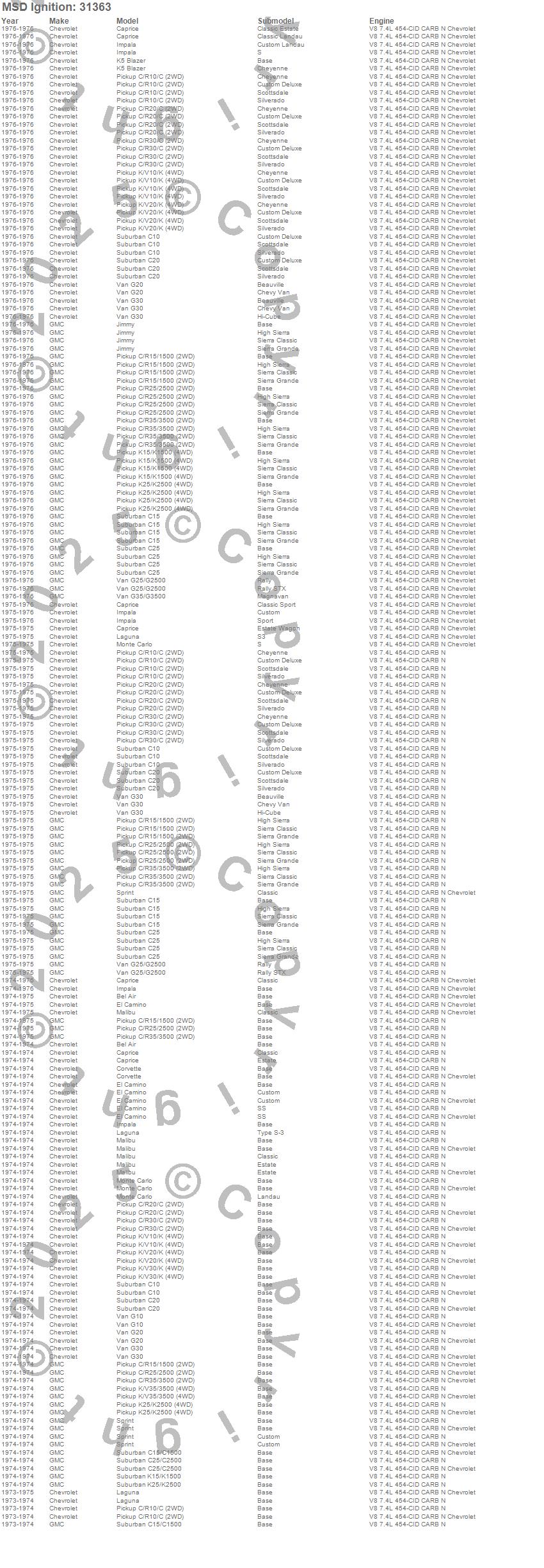 Bel Air, Blazer K5, C10 Pickup, C10 Suburban, C15 Suburban, C15/C1500, C15/C1500 Suburban, C20 Pickup, C20 Suburban, C25 Suburban, C25/C2500 Pickup, C25/C2500 Suburban, C30 Pickup, C35/C3500 Pickup, C3500 Pickup, Caprice, Corvette, El Camino, G10 Van, G20 Van more…