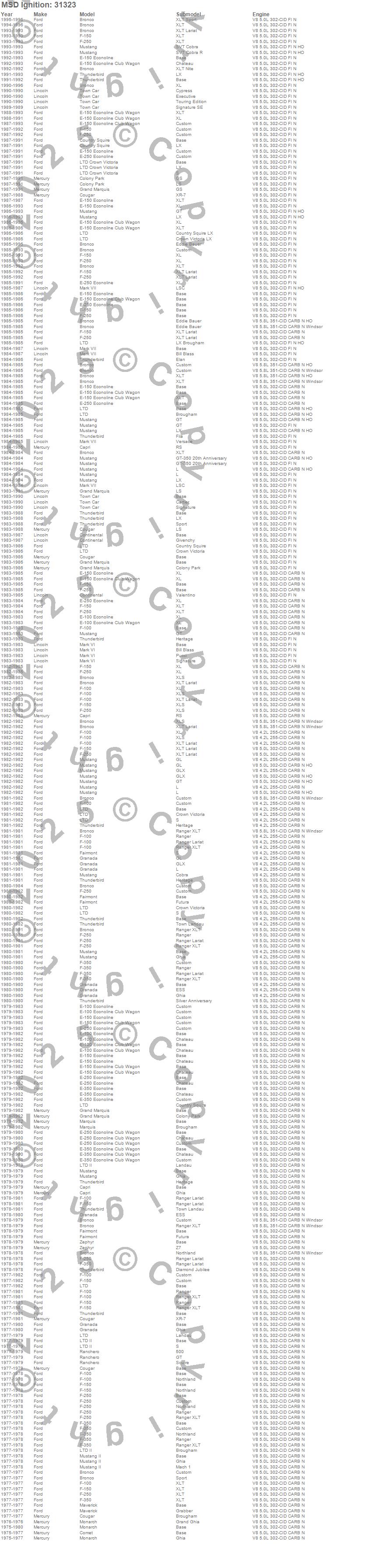 Bronco, Capri, Colony Park, Comet, Continental, Cougar, Country Squire, E-100 Econoline, E-150 Econoline, E-150 Econoline Club Wagon, E-250 Econoline, E-350 Econoline, F-100, F-150, F-250, F-350, Fairmont, Granada, Grand Marquis, LTD more…