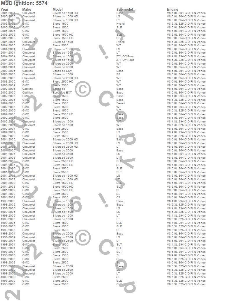 Below is an abreviated list of applications for the Street Fire Spark Plug Wire Set.
