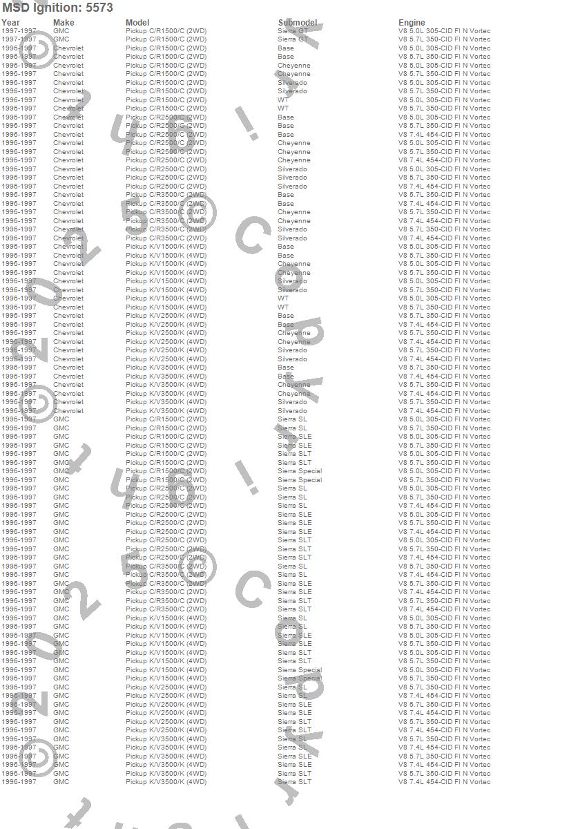 Below is an abreviated list of applications for the Street Fire Spark Plug Wire Set.