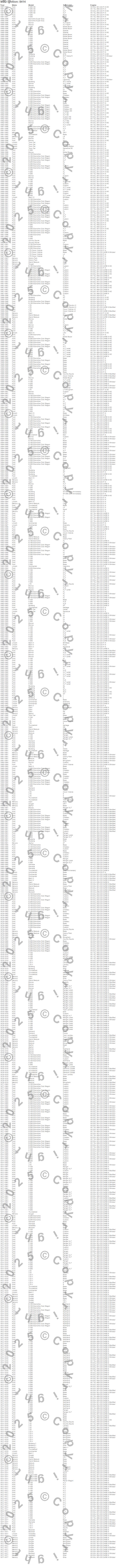 Bronco, Capri, Colony Park, Comet, Continental, Cougar, Country Squire, Custom 500, E Super Duty, E-100 Econoline, E-100 Econoline Club Wagon, E-150 Econoline, E-150 Econoline Club Wagon, E-250 Econoline, E-250 Econoline Club Wagon, E-350 Econoline, E-350 Econoline Club Wagon, F-100, F-150, F-250 more…