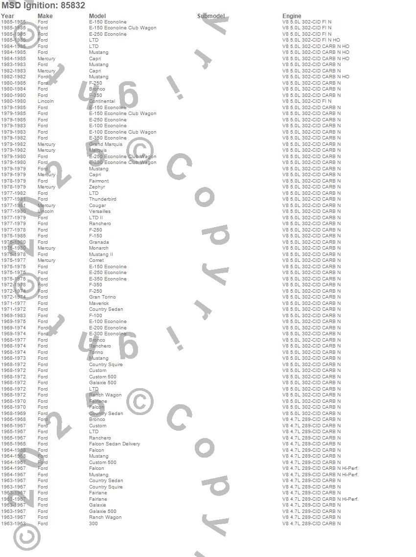 Bronco, Capri, Club Cargo, Comet, Continental, Cougar, Country Sedan, Country Squire, Custom, Custom 500, E-100 Econoline, E-150 Econoline, E-200 Econoline, E-250 Econoline, E-300 Econoline, E-350 Econoline, F-100, F-150, F-250, F-350 more…
