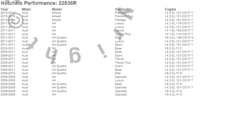 Below is an abreviated list of applications for the Sport Sway Bar.