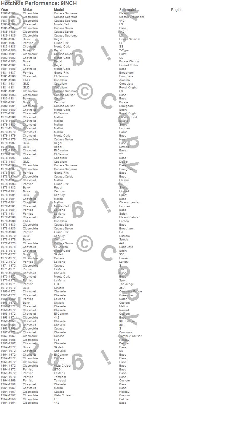 Below is an abreviated list of applications for the Sway Bar Axle Mount Kit.