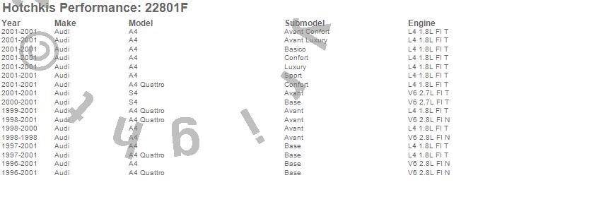 Below is an abreviated list of applications for the Sport Sway Bar.