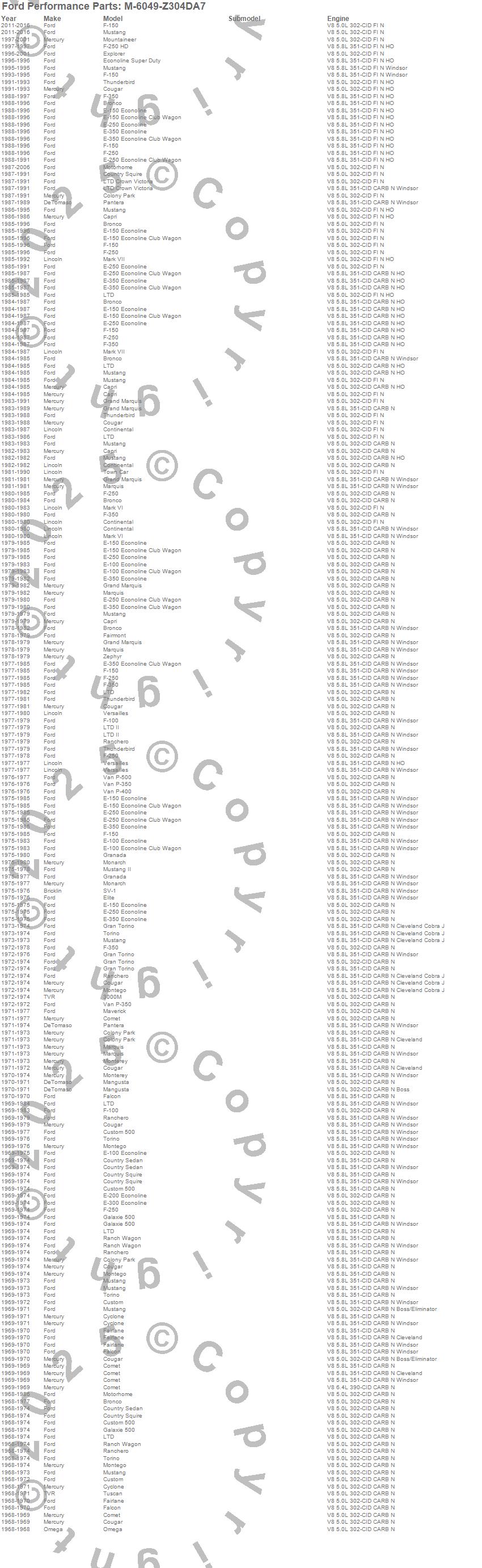 Ford Performance Parts High Flow Aluminum Cylinder Head # M-6049-Z304DA7 - For Use w/302/351W - Assembled Heads - 63cc with 7mm valve CNC Combustion Chamber - 1 pc.