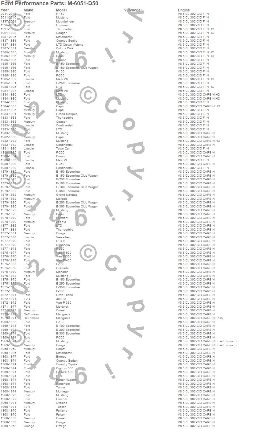 Ford Performance Parts Cylinder Head Gaskets # M-6051-D50 - .042 in. Compressed Thickness - 9 short head bolts - 10 long head bolts - 1 short head bolt with stud