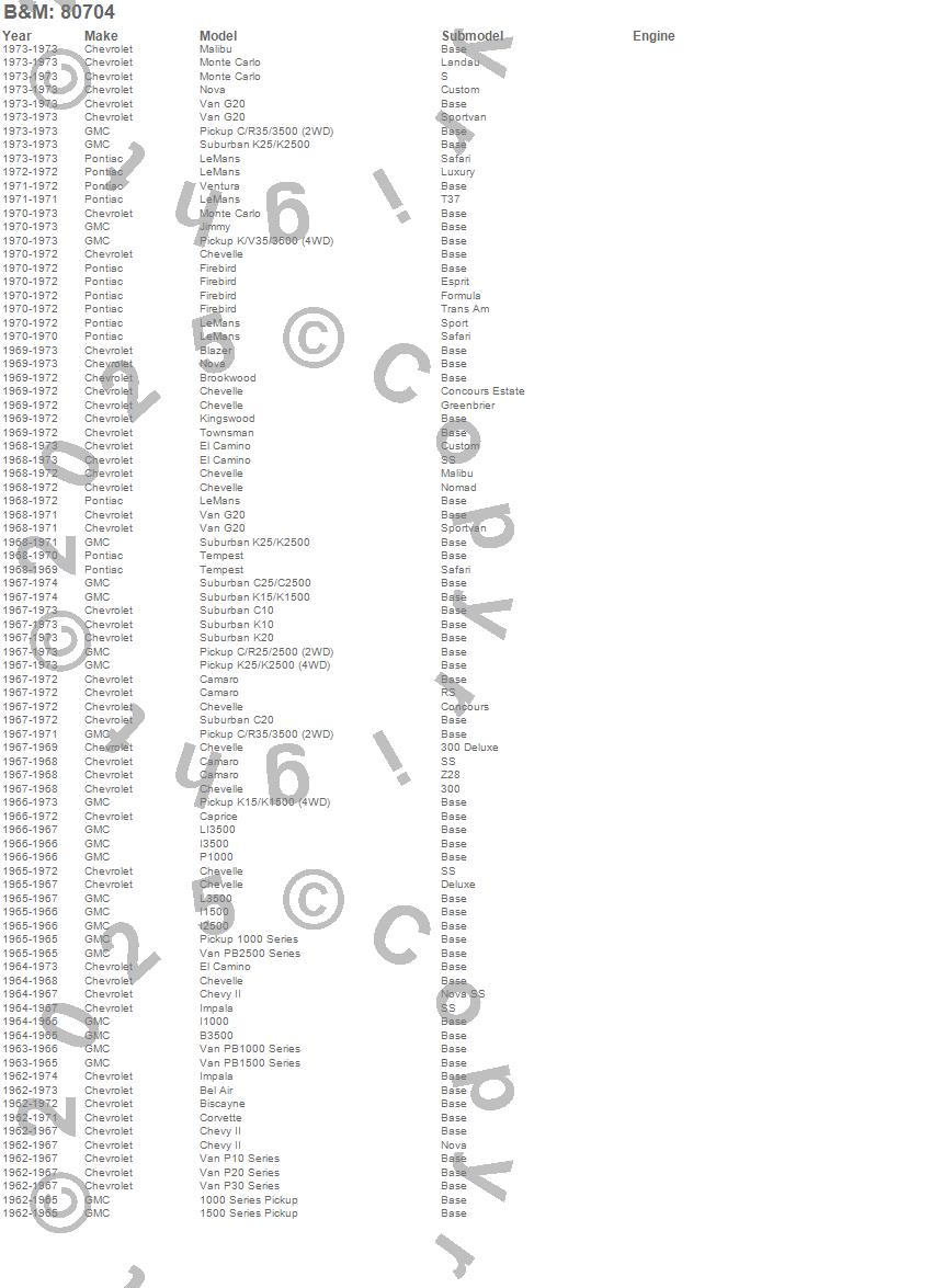 Below is an abreviated list of applications for the Pro Stick Automatic Shifter.