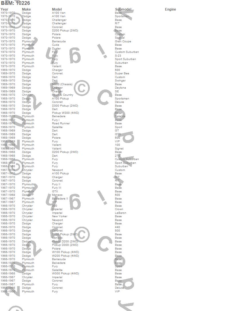 300, A100 Truck, A100 Van, Barracuda, Belvedere, Belvedere II, Challenger, Charger, Coronet, D100 Pickup, D200 Pickup, D200 Series, D300 Pickup, Dart, Duster, Fury, Fury I, Fury II, Fury III, GTX more…