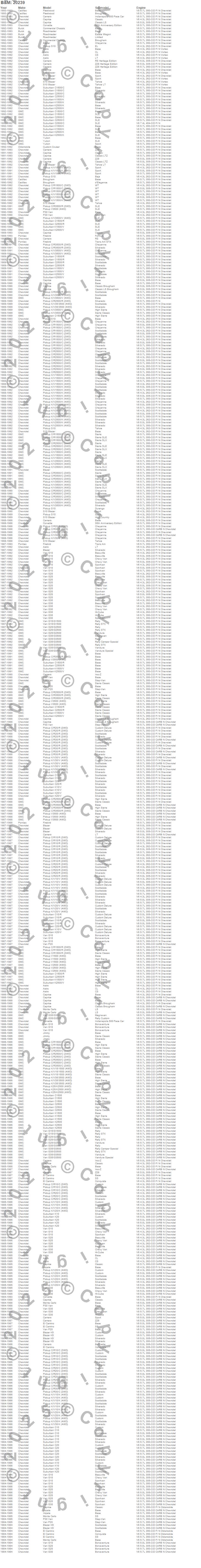 Blazer, Blazer K5, Brougham, C10 Pickup, C10 Suburban, C1500, C1500 Pickup, C1500 Suburban, C20 Pickup, C20 Suburban, C2500 Pickup, C2500 Suburban, C30 Pickup, C3500 Pickup, Camaro, Caprice, Commercial Chassis, Corvette, Custom Cruiser, El Camino more...