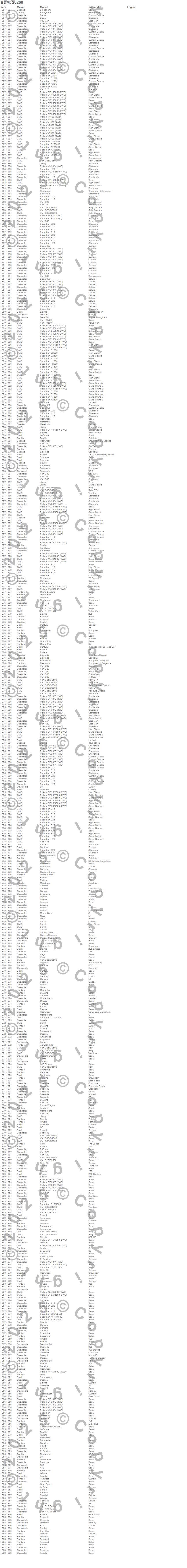 442, 98, Apollo, Bel Air, Biscayne, Blazer, Blazer K5, Bonneville, Brookwood, Brougham, C10 Pickup, C10 Suburban, C15 Suburban, C15/C1500, C15/C1500 Suburban, C1500, C1500 Suburban, C20 Pickup, C20 Suburban, C25 Suburban more…