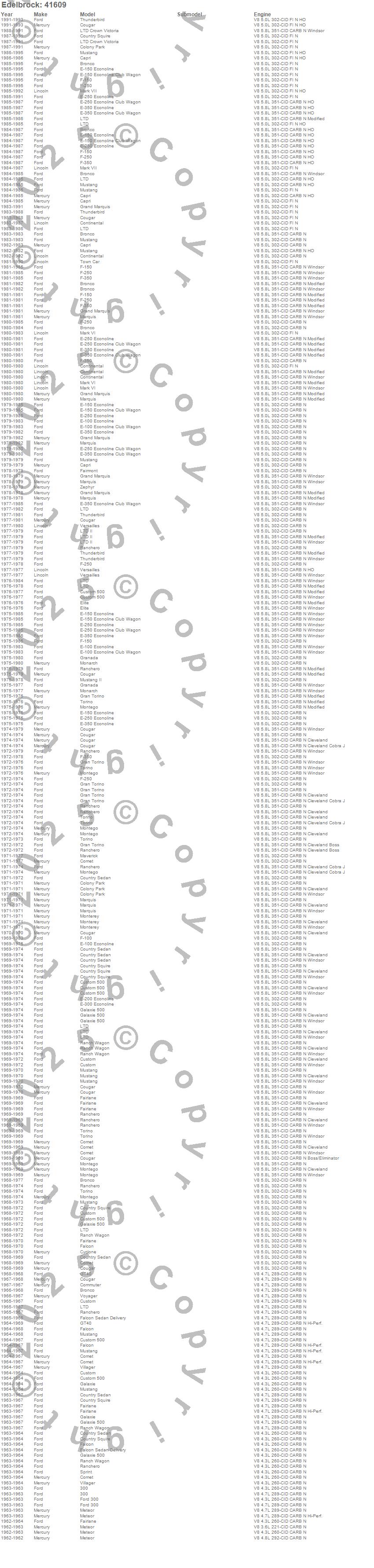 Bronco, Capri, Club Cargo, Colony Park, Comet, Commuter, Continental, Cougar, Country Sedan, Country Squire, Custom, Custom 500, Cyclone, E-100 Econoline, E-100 Econoline Club Wagon, E-150 Econoline, E-150 Econoline Club Wagon, E-200 Econoline, E-250 Econoline, E-250 Econoline Club Wagon more...