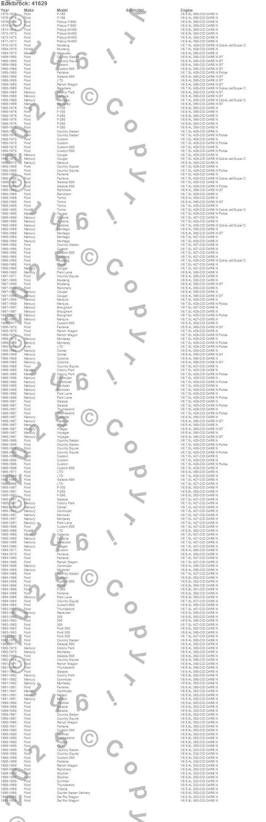 Breezeway, Brougham, Caliente, Club Cargo, Colony Park, Comet, Commuter, Cougar, Country Sedan, Country Squire, Courier Sedan Delivery, Custom, Custom 300, Custom 500, Cyclone, Del Rio Wagon, F Series, F-100, F-150, F-250 more...