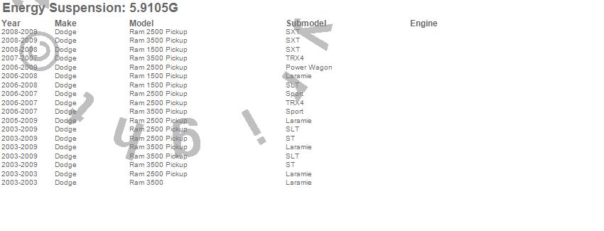 Below is an abreviated list of applications for the Bump Stop Set.