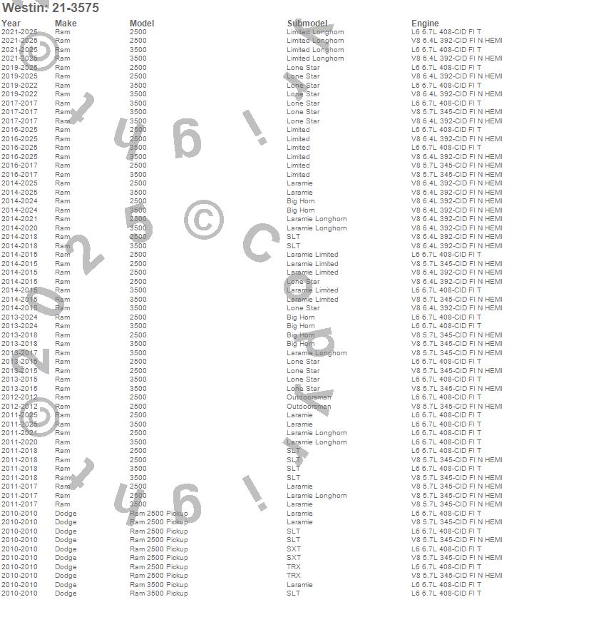 Below is an abreviated list of applications for the Platinum Series 4 in. Oval Step Bar Cab Length.
