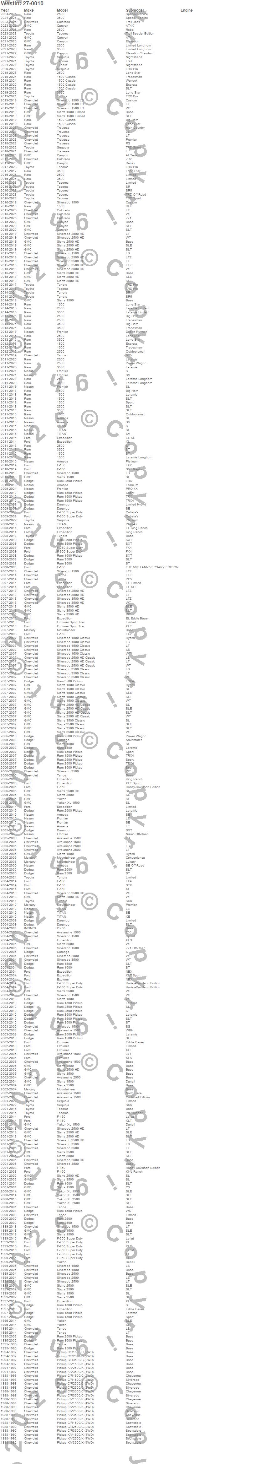 Armada, Aspen, Astro, Avalanche 1500, C1500, C1500 Pickup, C2500 Pickup, C3500 Pickup, Canyon, Colorado, Dakota, Durango, Expedition, Explorer, Explorer Sport Trac, F-150, F-250 Super Duty, F-350 Super Duty, Frontier, K1500 more…