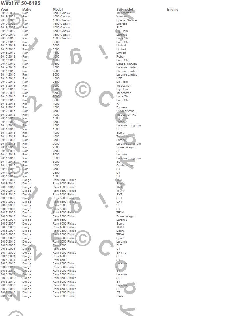 Below is an abreviated list of applications for the Westin Bed Mat. 1500, Ram 1500, Dodge, Ram, 2016, 2015, 2014, 2013, 2012, 2011, 2010, 2009, 2008, 2007, 2006, 2005, 2004, 2003, 2002 more…