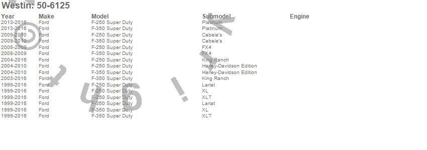 Below is an abreviated list of applications for the Westin Bed Mat. F-250 Super Duty, F-350 Super Duty, Ford, 2016, 2015, 2014, 2013, 2012, 2011, 2010, 2009, 2008, 2007, 2006, 2005, 2004, 2003, 2002, 2001, 2000 more…