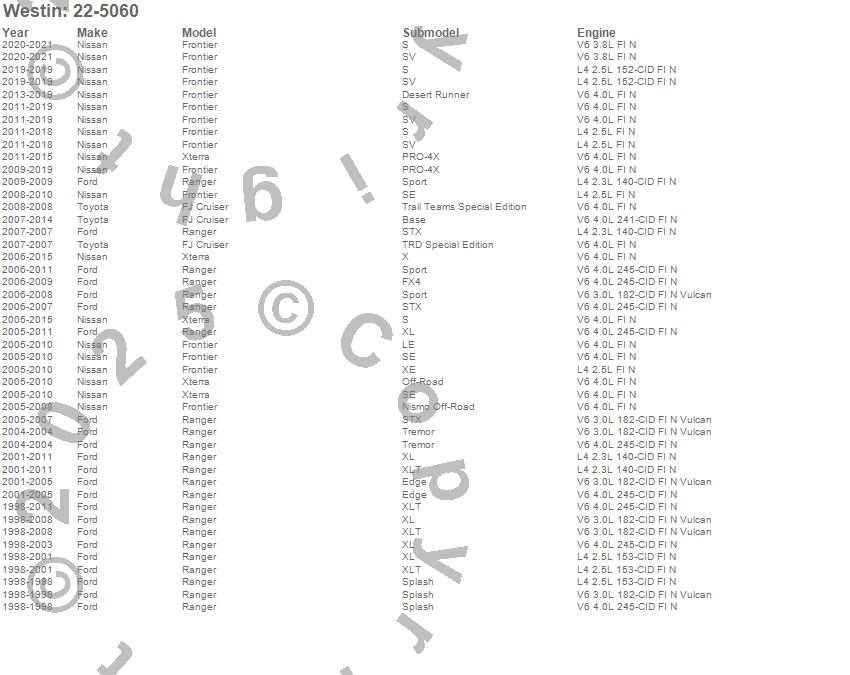 Below is an abreviated list of applications for the Oval Tube2 4 in. Oval Step Bar Cab Length.
