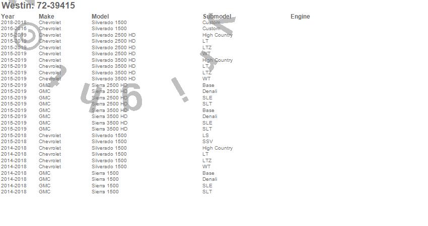 Below is an abreviated list of applications for the Wade In-Channel Wind Deflectors.