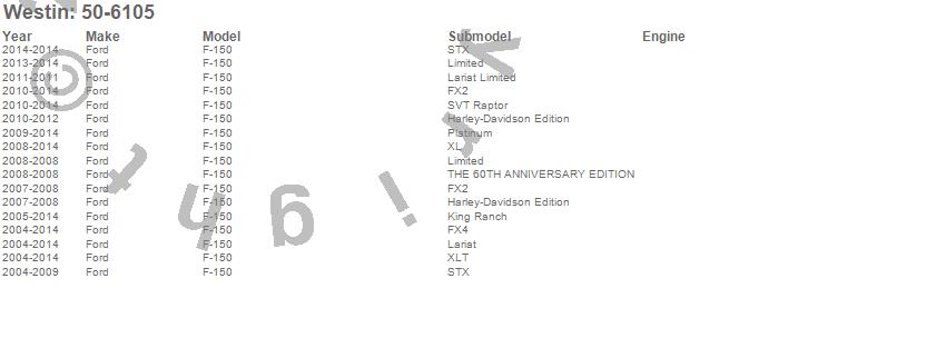 Below is an abreviated list of applications for the Westin Bed Mat.