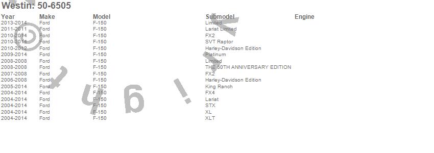 Below is an abreviated list of applications for the Westin Tailgate Mat.