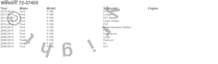Below is an abreviated list of applications for the Wade In-Channel Wind Deflectors.
