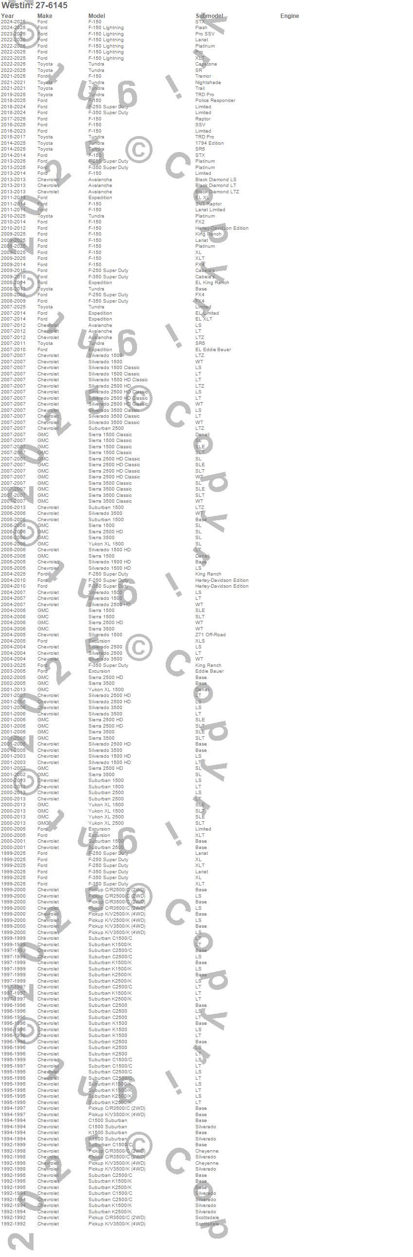 Ascender, Avalanche, Avalanche 1500, Avalanche 2500, C1500 Suburban, C2500 Pickup, C2500 Suburban, C3500 Pickup, Envoy XL, Excursion, Expedition, F-150, F-250 Super Duty, F-350 Super Duty, K1500 Suburban, K2500 Pickup, K2500 Suburban, K2500 Suburban (Canadian), K3500 Pickup, Mark LT more…