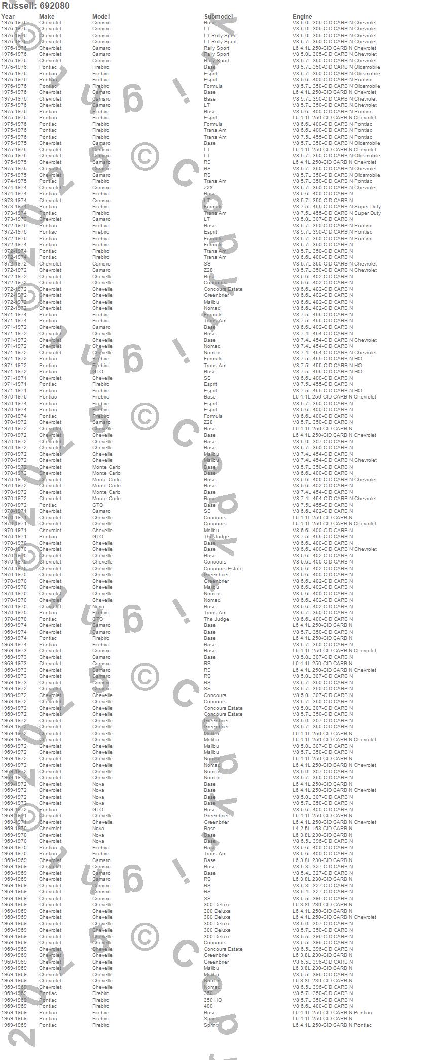 Camaro, Chevelle, Firebird, Firebird Trans Am, GTO, Monte Carlo, Nova, Chevrolet, Pontiac, 1976, 1975, 1974, 1973, 1972, 1971, 1970, 1969, 1968 more...