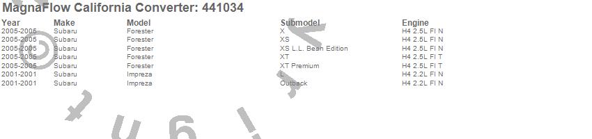 Below is an abreviated list of applications for the Universal California Catalytic Converter.
