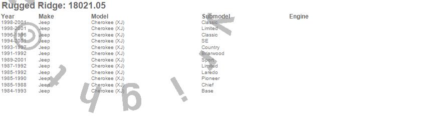 Cherokee (XJ), Jeep, 2001, 2000, 1999, 1998, 1997, 1996, 1995, 1994, 1993, 1992, 1991, 1990, 1989, 1988, 1987, 1986, 1985, 1984 more…