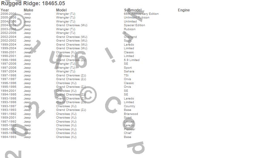 Cherokee (XJ), Grand Cherokee (WJ), Grand Cherokee (ZJ), Wrangler (LJ), Wrangler (TJ), Jeep, 2006, 2005, 2004, 2003, 2002, 2001, 2000, 1999, 1998, 1997, 1996, 1995, 1994, 1993 more…