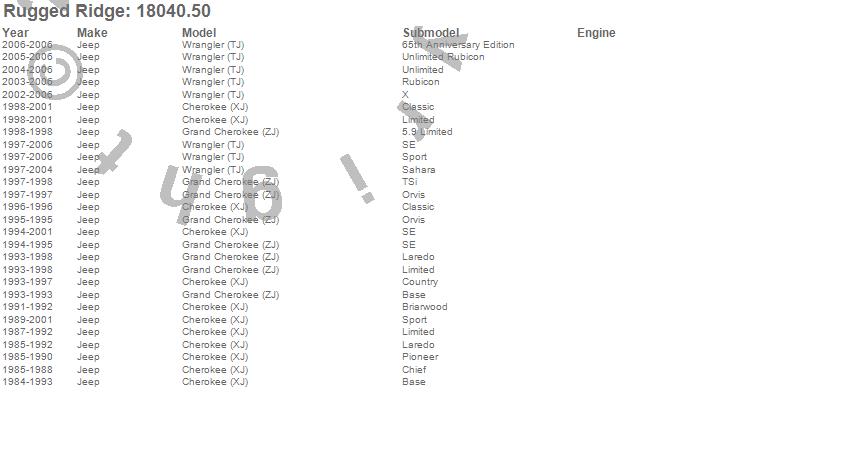 Cherokee (XJ), Grand Cherokee (ZJ), Wrangler (LJ), Wrangler (TJ), Jeep, 2006, 2005, 2004, 2003, 2002, 2001, 2000, 1999, 1998, 1997, 1996, 1995, 1994, 1993, 1992 more…