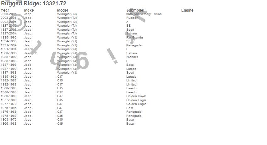 CJ5, CJ6, CJ7, Wrangler (TJ), Wrangler (YJ), Jeep, 2006, 2005, 2004, 2003, 2002, 2001, 2000, 1999, 1998, 1997, 1995, 1994, 1993, 1992 more…